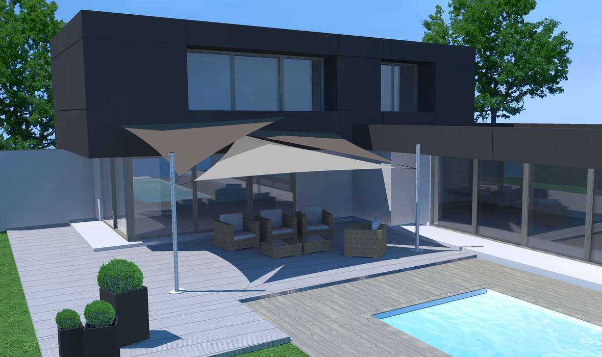 Don't forget to save your customization to be able to add to cartA special pack with 3 shade sails + installation accessories, for a design installation. This pack includes : The shade sails: 3 triangular sails The fixtures: 1 or 2 adjustable poles with the tension systems and the slides + the wall fixtures To cover a surface of approximately 4,60 x 3,00 m Total required space: 5,40 x 4,10 m