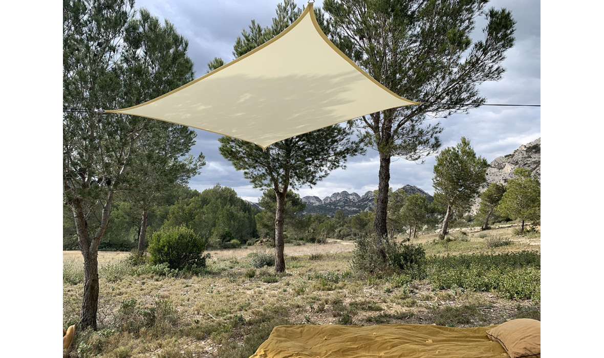 It resists winds of 40km/h while filtering more than 95% of UV rays (UPF higher than 30). Its seams are waterproof, a technology borrowed from the manufacture of high-quality clothing. Its coating resists the pressure of a 1062 mm water column, 20 times more than most sails on the market. The sail must be installed with the seams facing the ground.