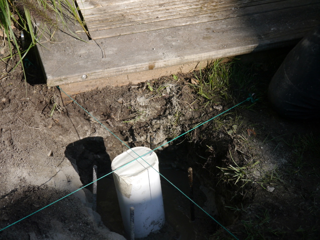 Crear un bloque de cemento de 60 hasta 80 cm de profundidad, en 40 cm de éste el forro será fijado (sellado). Cuanto mayor sea el bloque de cemento, mejor será la estabilidad del mástil. | ![]() |