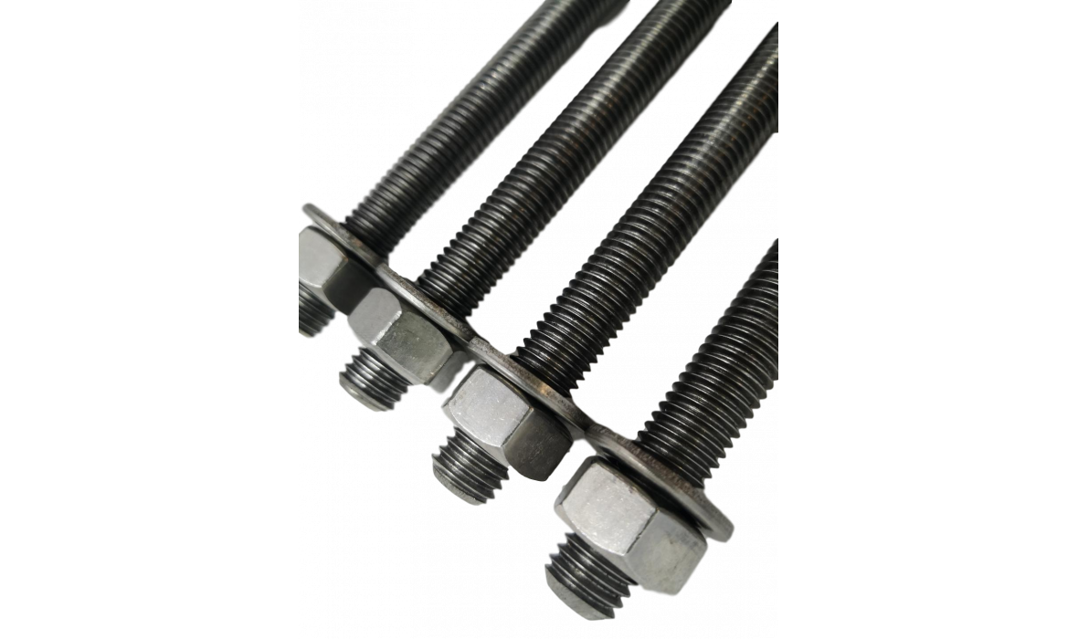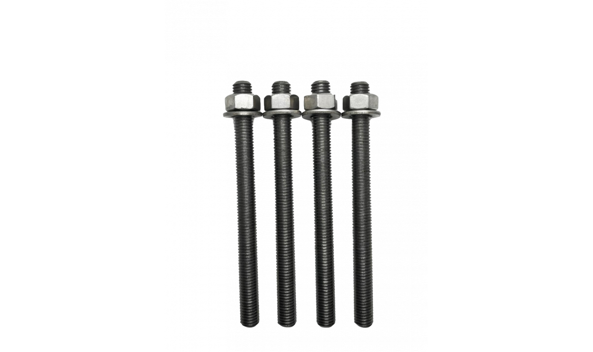 Juego de 4 varillas rosacadas M12 de 150 mm con arandelas y tuercas en Inox compatibles con les basesa atornillar 90° et 82° de los mástiles ajustables.