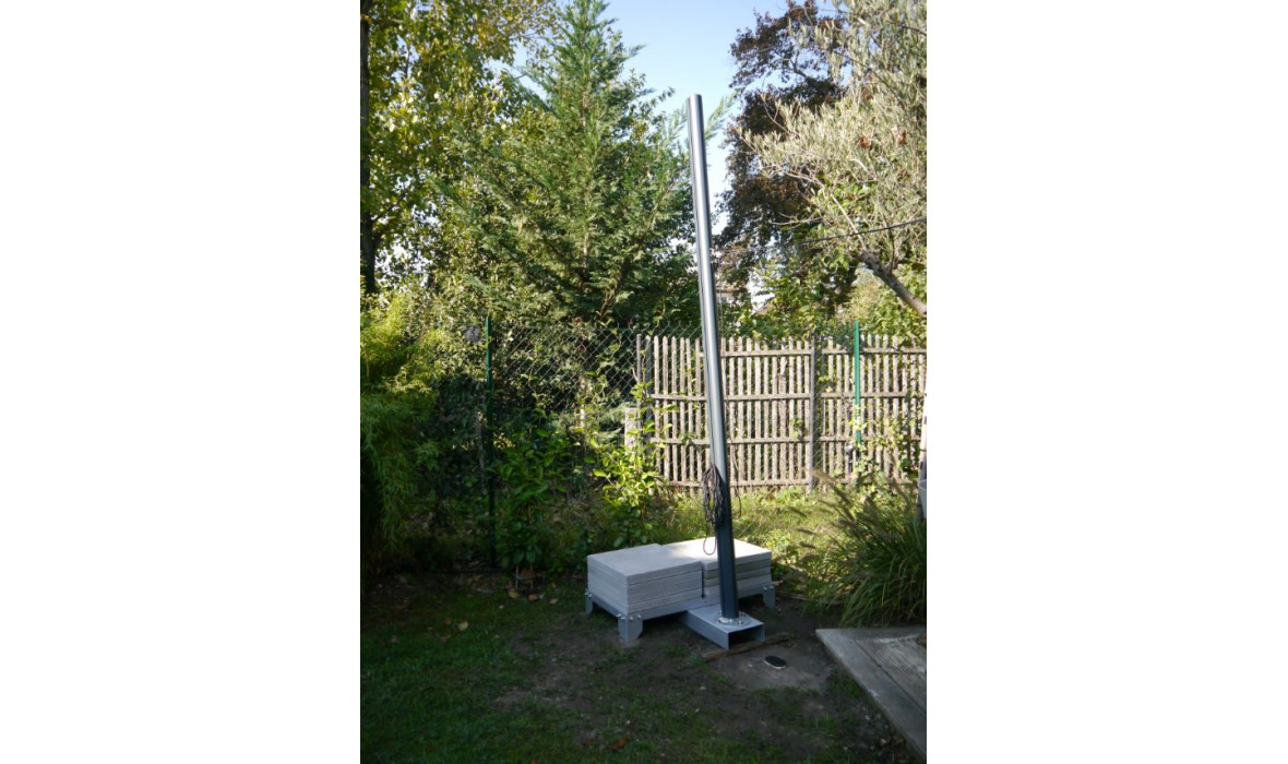 Ce support est à compléter avec un mât à visser en version 90° ou 82°. Grâce au support vous n'avez pas besoin de visser ou de creuser votre sol.
