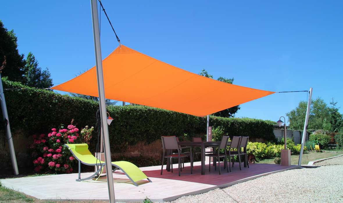 Lors de son installation, créez une pente de 25% entre les différents points de fixation pour permettre l’écoulement de l’eau de pluie. Par exemple, si le côté de votre voile fait 3 mètres, vous devrez faire une pente de 75 cm (3 x 0,25).